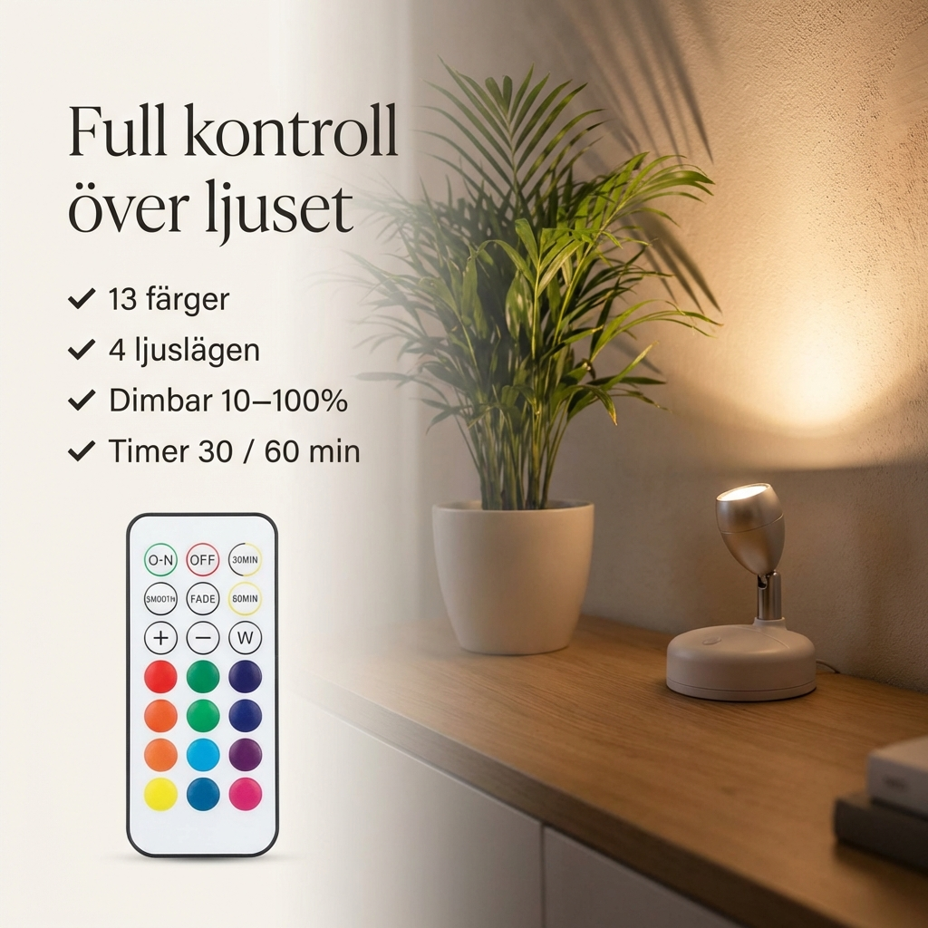 Med justerbart ljus och fjärrkontroll anpassar du enkelt stämningen efter tid på dygnet eller tillfälle.