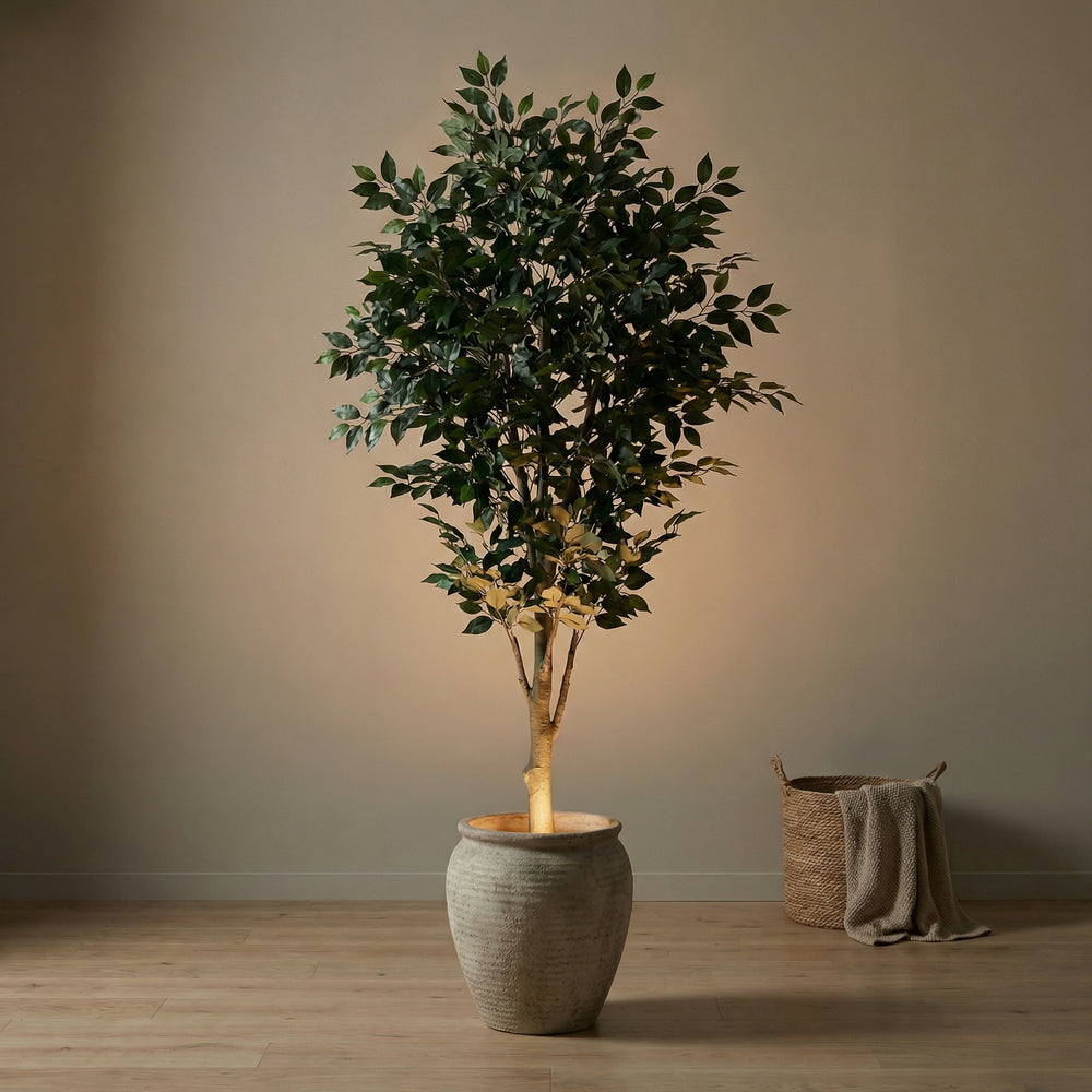 Skymning är en diskret uplight som placeras under växter, möbler eller i mörka hörn för att skapa djup och en mer genomtänkt känsla i rummet.